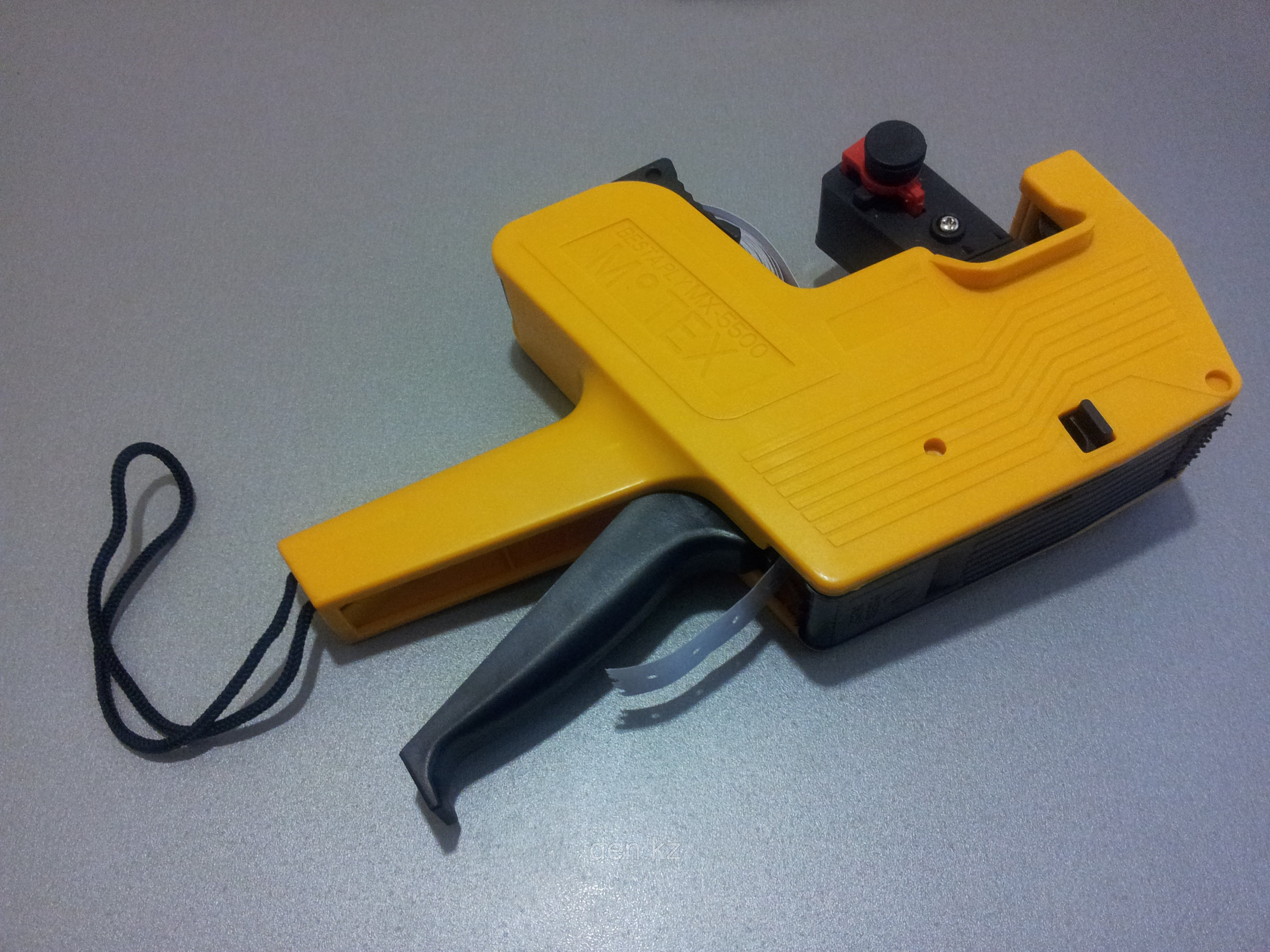 Зачем покупать этикет пистолет для маркировки. Основное его применение, конечно же, ценники. При помощи этикет-пистолета на самоклеющейся этикетке печатают цены (ценников), вес, наименование, артикул товара и т.д. Современные этикет пистолеты используют для маркировки продуктов питания, одежды, изделий из пластика, дерева и метала.